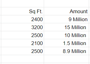 Now to understand it in a much easier way, let's take a simple example. Below are the prices of properties in x city. It shows the area of the house and total price.