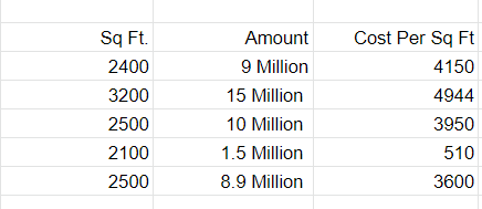Now this data might have some errors or might be incorrect, not all sources on the internet are correct. To begin, we'll add a new column to display the cost per square foot.